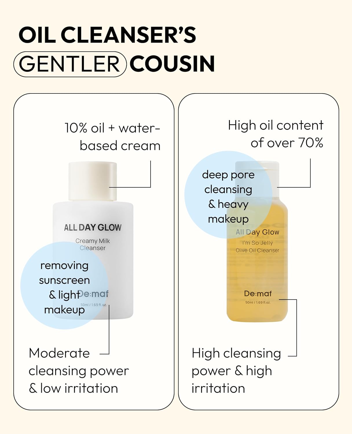 - Gentle Cleansing Action: The Demaf Creamy Milk Cleanser skillfully removes makeup and excess oil without compromising your skin's natural moisture balance.