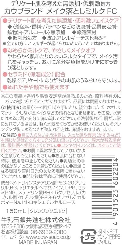 Discover the gentle yet effective **Cow Brand Additive-Free Cleansing Milk** in a convenient 130ml refill pack, now available in a set of two! Formulated without colorants, fragrances, or preservatives, this milk-like cleanser is ideal for sensitive skin types. Its smooth texture effortlessly lifts makeup and impurities while ensuring a hydrated, non-drying finish. Enjoy easy use with the handy pump design and experience the luxury of skincare shipped directly from Japan, complete with free worldwide shipping and a 1-month warranty. Perfect for a quick and soothing cleanse after a long day—embrace a fresh, radiant complexion today!