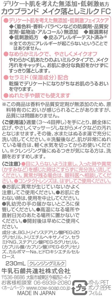 Cow Brand Additive-Free Makeup Remover Milk 230ml