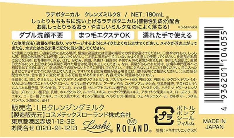 Japanese skincare, known for its focus on natural ingredients and meticulous craftsmanship, reflects a deep respect for nature. The Latte Botanical Cleanse Milk S embodies this ethos, utilizing high-quality botanical elements to nourish and care for the skin. This product not only offers effective cleansing but also represents the harmony between nature and beauty that is central to Japanese culture.