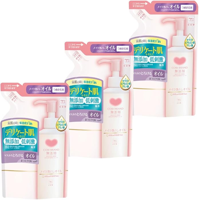 Discover the gentle yet powerful cleansing abilities of Cow Brand's Additive-Free Cleansing Oil. This economical 3-pack includes three 130mL bottles, perfect for your daily cleansing routine. Crafted in Japan, this unique cleansing oil effectively removes impurities while nurturing your skin's natural moisture balance. Suitable for all skin types, it effortlessly dissolves makeup—including hard-to-remove long-lasting lipstick and mascara—without any harsh scrubbing. Transform your cleansing ritual into a moment of self-care with this premium product.