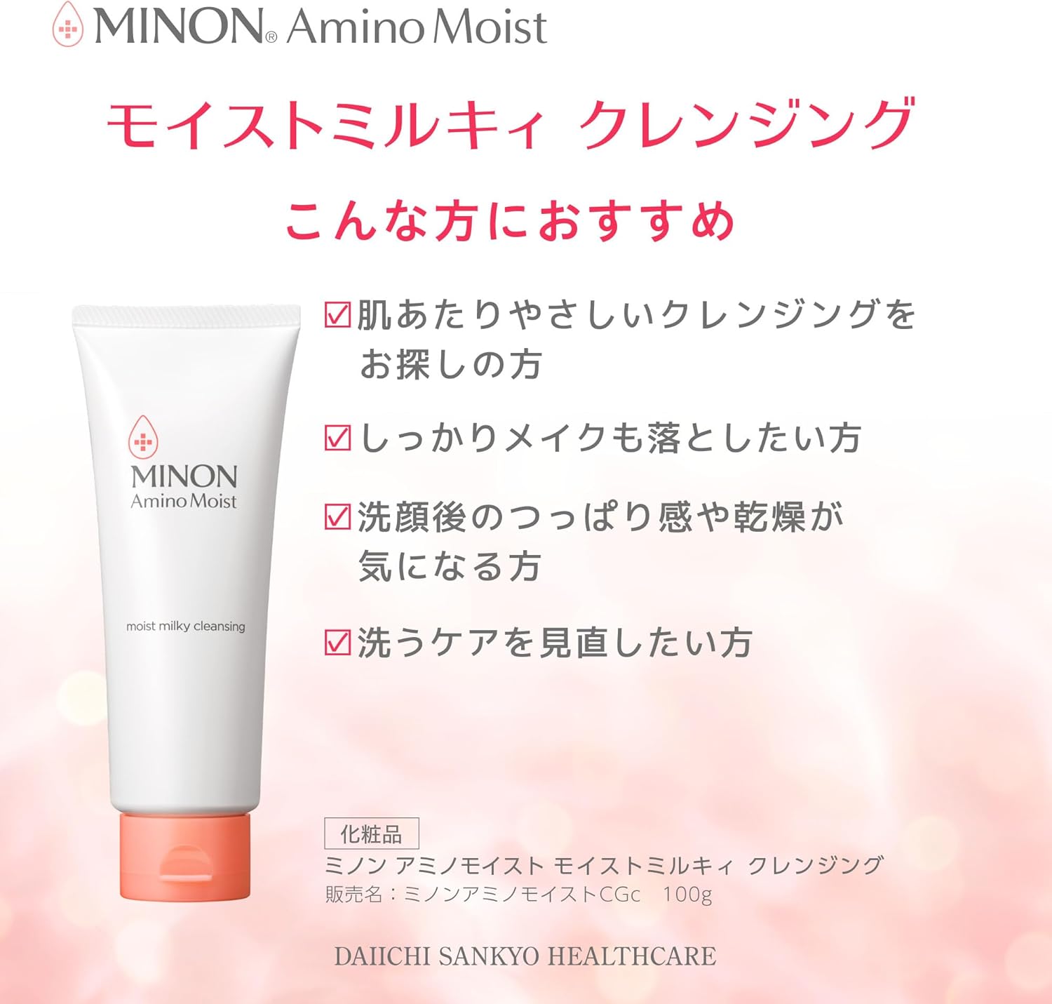Minon Amino Moist Moist Milky Cleansing Cream 100g - Gentle Makeup Remover for Sensitive Skin