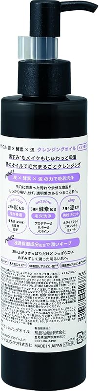 Introducing the Chacol Charcoal & Enzyme Cleansing Oil (200ML) by Kumano Yushi, your ultimate skincare solution for all skin types, including oily skin. This powerful black oil expertly removes makeup and unclogs pores using a unique blend of charcoal, enzymes, and clay. Enjoy the refreshing salt scent while achieving a brighter, clearer complexion. With free worldwide shipping and a 1-month warranty, this premium product is shipped directly from Japan, ensuring authenticity and quality. Experience effortless cleansing and indulge in the fusion of Japanese skincare traditions with modern formulations. Perfect for adults seeking effective skin clarity!