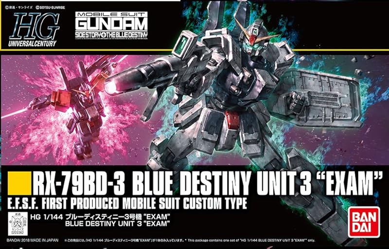 Discover the HGUC 1/144 Blue Destiny Unit 3 "EXAM" from Bandai Spirits, a must-have model kit for Gundam enthusiasts! This detailed and highly articulated model allows you to recreate dynamic poses and features a variety of weapons, including the unique twin Beam Rifle. With free worldwide shipping and items shipped directly from Japan, your collectible is just a click away. Enjoy peace of mind with a 1-month warranty from a trusted seller based in Japan. Whether you're an avid modeler or a passionate fan of the Gundam series, this is the perfect addition to your collection!