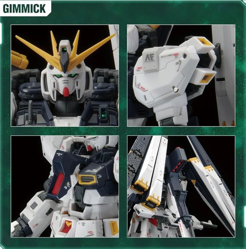 The RG 1/144 ν model is specifically designed to showcase the advanced features of the ν Gundam. It includes: