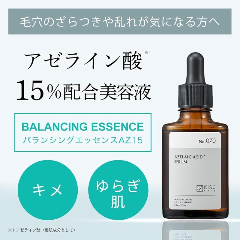 Discover radiant skin with KisoCare's Azelaic Acid 15% Balancing Essence. Specially formulated for normal skin, this fragrance-free serum combines potent ingredients like panthenol, NAD+, and CICA to target pesky pores, excess oil, and rough texture. With free worldwide shipping and a 1-month warranty, you can confidently enjoy this beauty essential shipped directly from Japan. Ideal for effective acne care and everyday skin routine, KisoCare offers a gentle, alcohol-free solution that keeps your complexion clear and hydrated. Embrace the secret to smooth, vibrant skin with our luxurious 30ml serum!