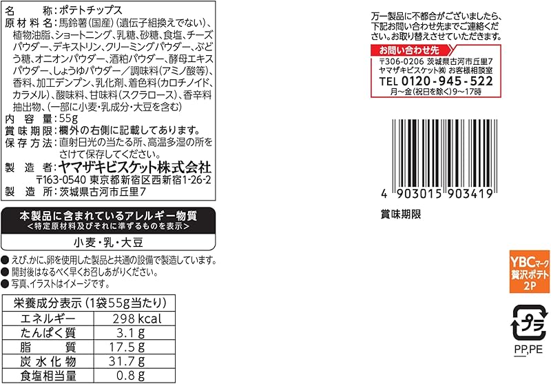 Your health and satisfaction are paramount; that’s why Yamazaki Biscuit uses only the finest ingredients. These chips are made with domestically sourced, non-GMO potatoes and high-quality vegetable oils, ensuring that each chip is packed with flavor and goodness. Key ingredients include: