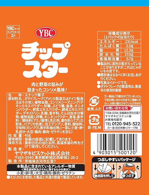 Indulge in the delicious taste of Yamazaki Biscuit's Chip Star Consomme Flavor, packaged perfectly in a convenient cylinder. Each set includes eight 45g snacks, delivering a delightfully crispy texture paired with rich flavors of meat and vegetables. As a beloved Japanese snack since 1976, these potato chips are not only a crowd favorite but also provide a satisfying crunch. Enjoy the benefit of free worldwide shipping, with all orders shipped directly from Japan and a 1-month warranty for your peace of mind. Elevate your snack game with these iconic chips that capture the essence of Japanese snacking!