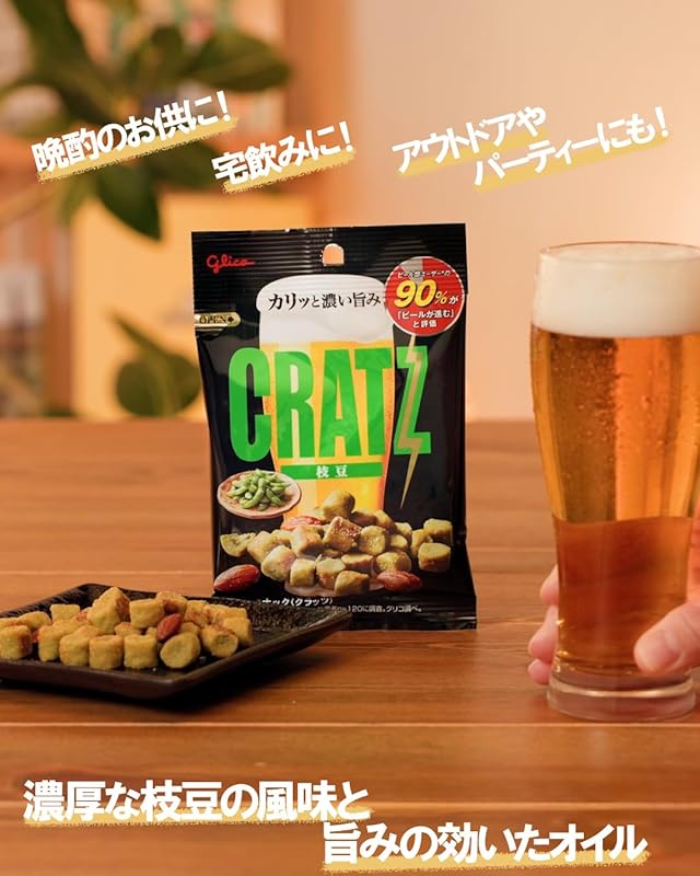 Whether you're hosting a lively gathering or indulging in a quiet movie night, Glico Cratz Edamame Snack makes for an exceptional snack choice. Its savory profile is the perfect companion for a variety of drinks:
