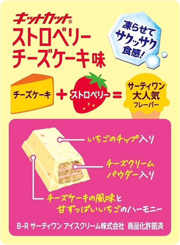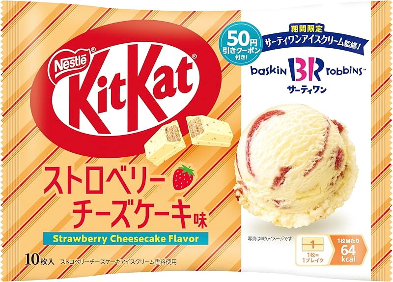 Indulge in the delightful taste of OKURUX Nestlé KitKat Mini Strawberry Cheesecake flavor! This unique collaboration with Baskin-Robbins brings together a crispy wafer filled with creamy cheese and sweet, tangy strawberry goodness, offering a deliciously refreshing experience. Each pack contains 10 individually wrapped bars, perfect for sharing or enjoying alone. With free worldwide shipping and a seller based in Japan, you can savor this exceptional treat with peace of mind—a one-month warranty is included. Order now to experience this popular flavor that's not just a snack, but a delightful taste adventure!